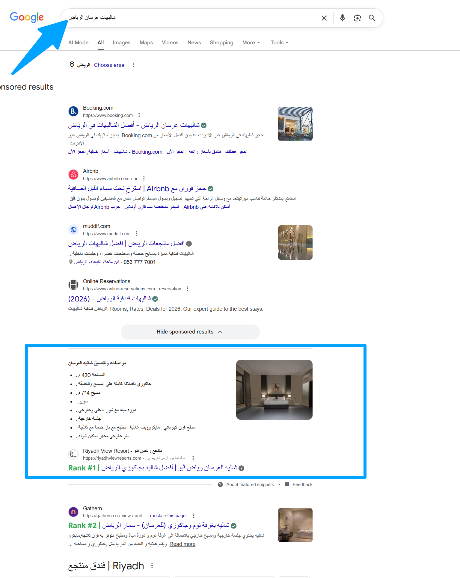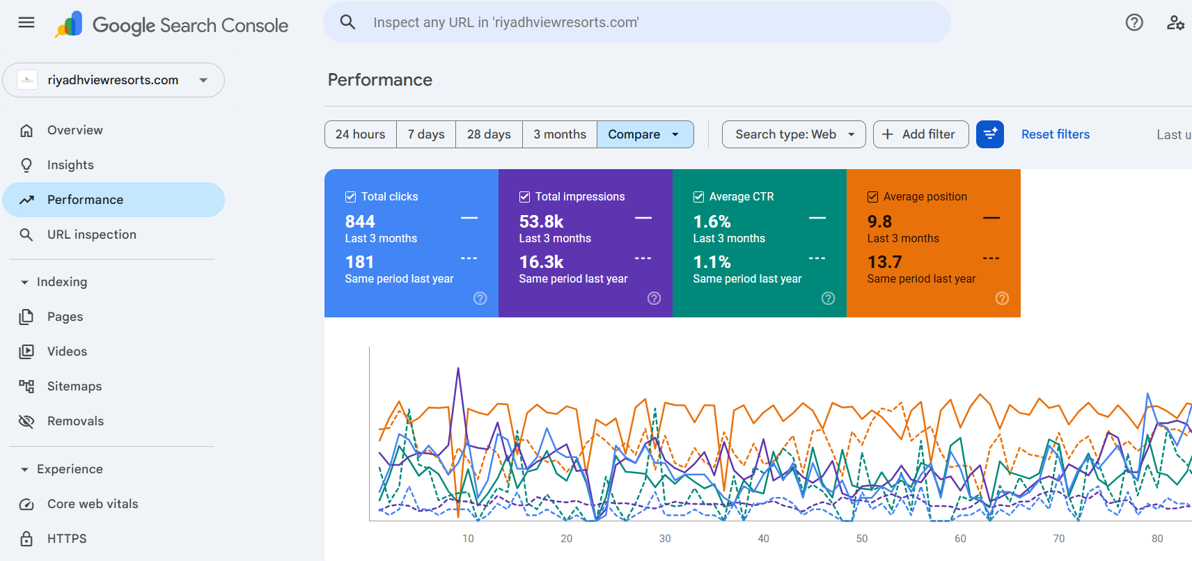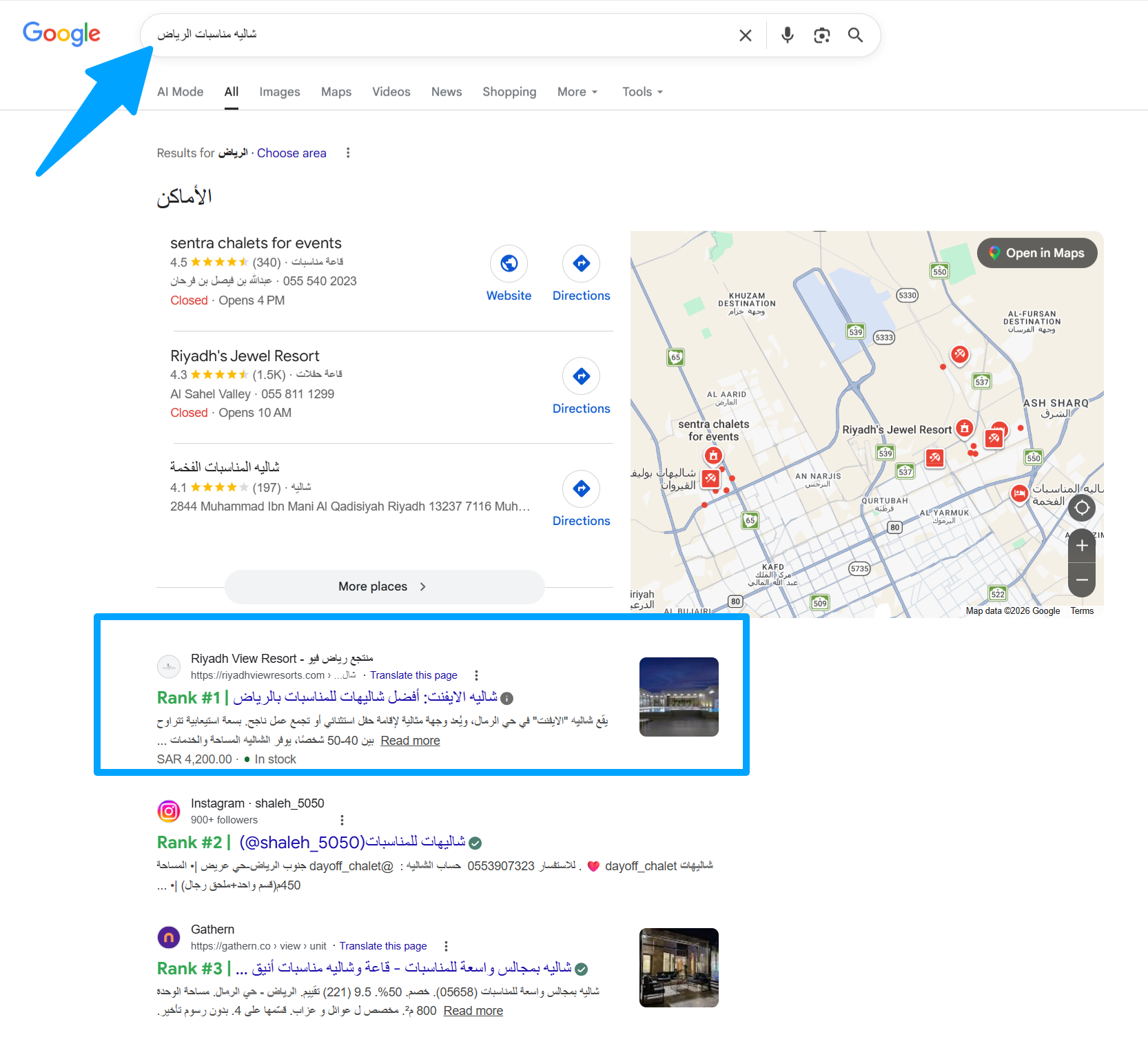 Riyadh View Resorts is a premium hospitality destination in Saudi Arabia, offering luxurious, fully-equipped chalets tailored for families, honeymooners, and private events. Despite offering a high-end physical experience, their digital presence was significantly underperforming, failing to capture high-intent organic search traffic for local resort and chalet bookings.